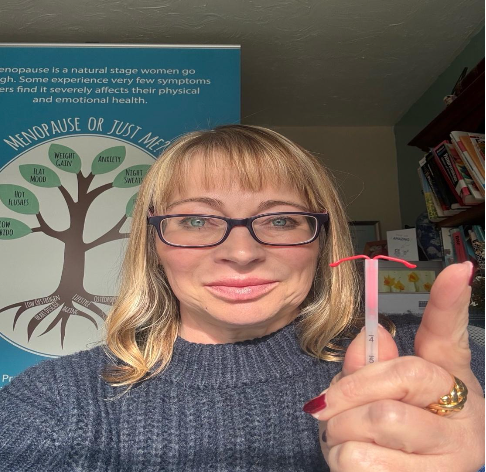 During my menopause consultations I always discuss types of HRT. This includes types of Progesterone. If you have a womb you will be prescribed Progesterones as part of your HRT. A MIRENA IUD (coil) is an excellent choice. You can see how tiny it is. It’s inserted like having a cervical smear, your cervical is opened and it’s inserted through the opening in your Cervix into your womb. Yes it’s a bit uncomfortable but 15 mins later it’s all done!